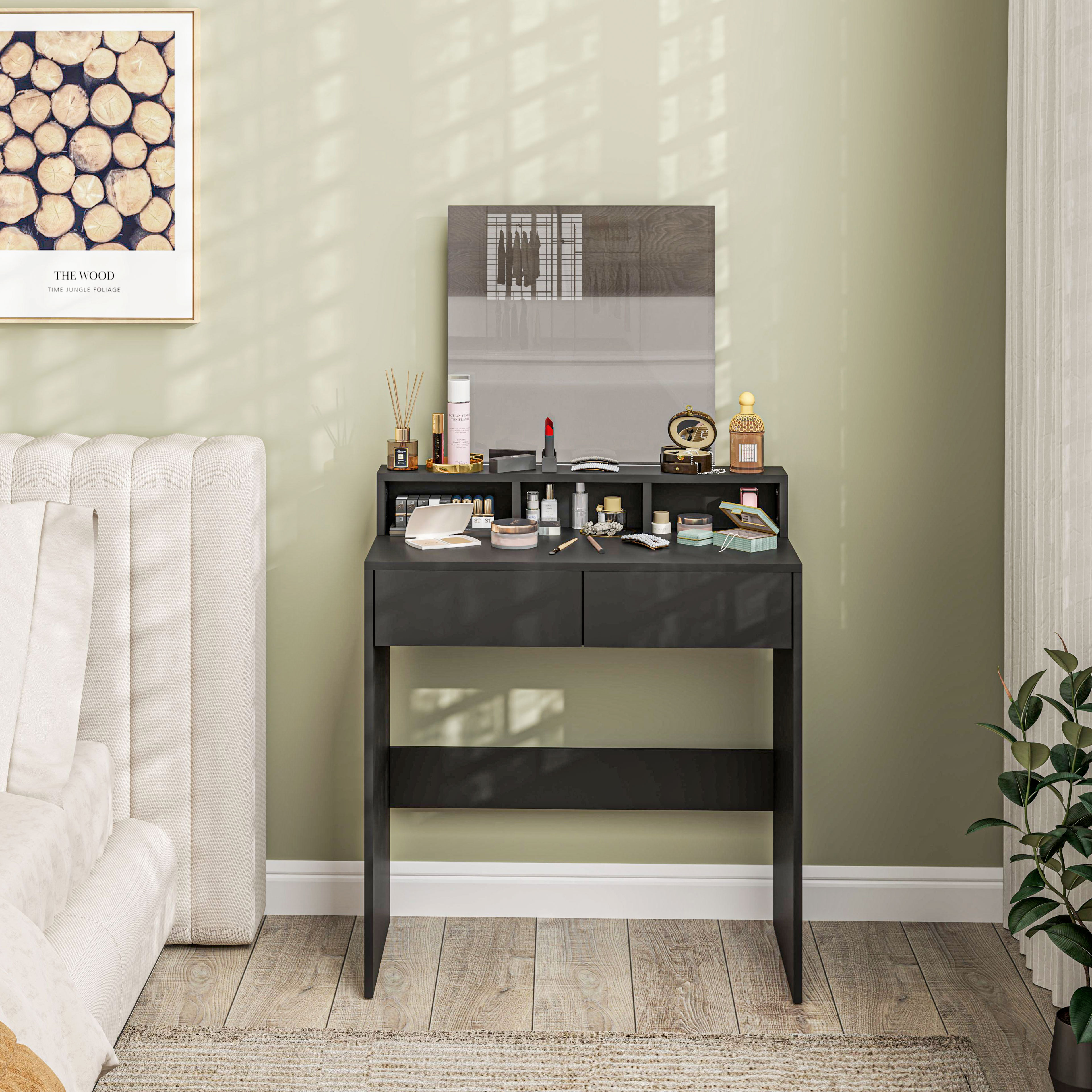 Multi-Storage Dressing Table, With Mirror - Black